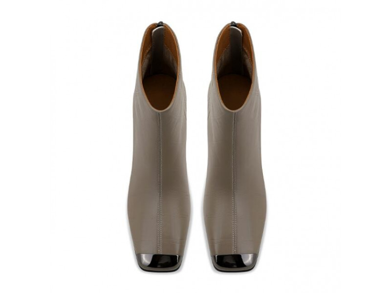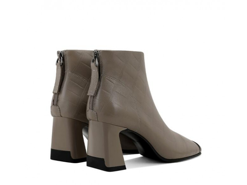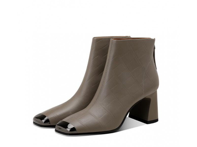 Embossed Lambskin Metal Square Toe Heeled Boots