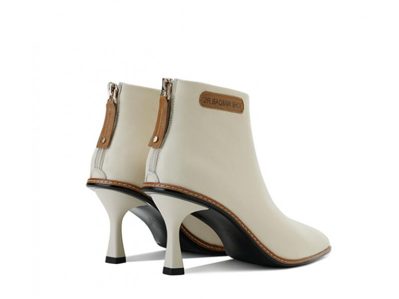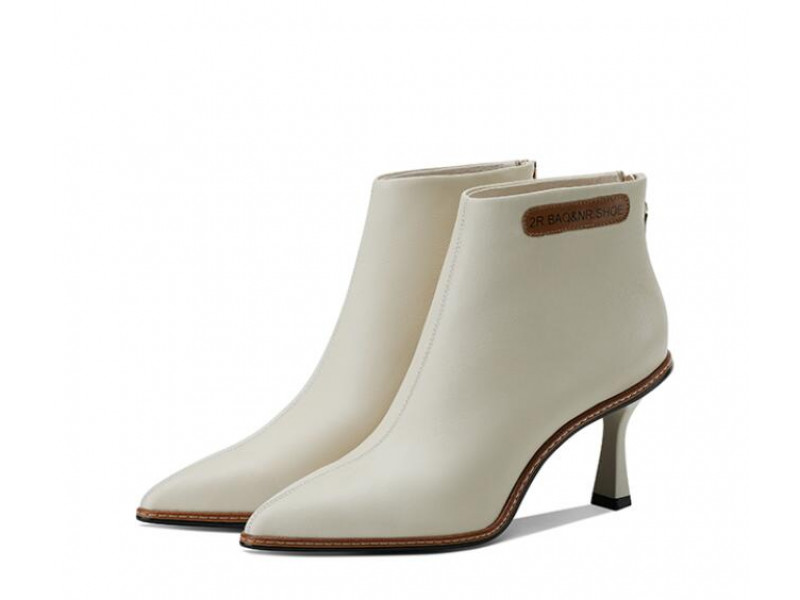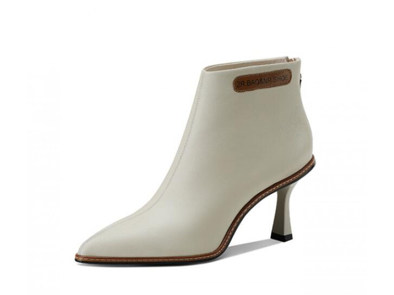 Genuine leather white shoes elegant stiletto high-heeled ankle boots