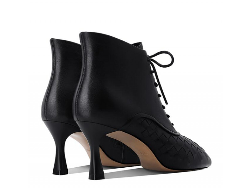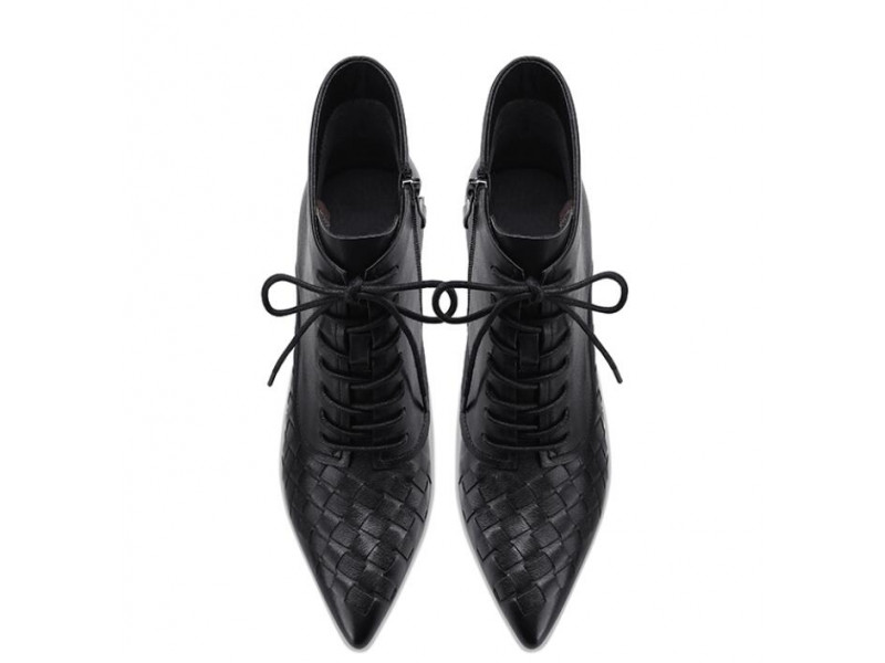 Lace-up vintage woven leather sexy pointed toe stiletto Martin boots