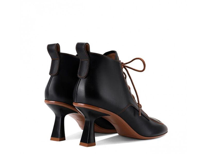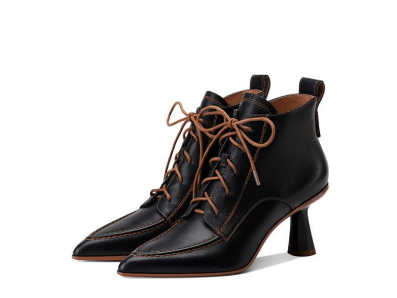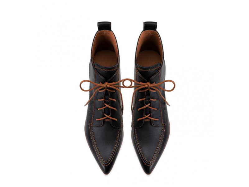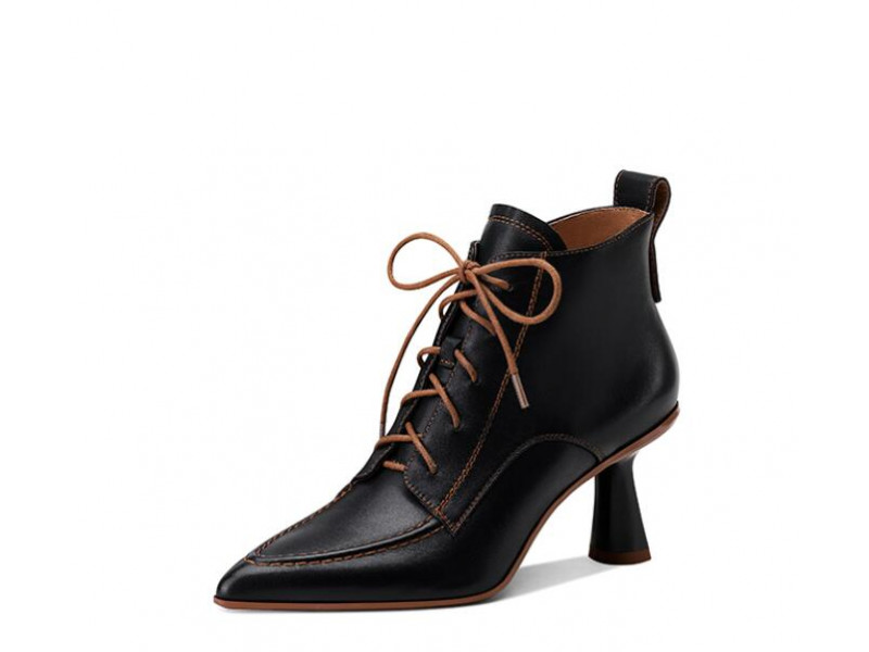 New women's pointed-toe lace-up full leather ankle boots with contrast color inside and outside