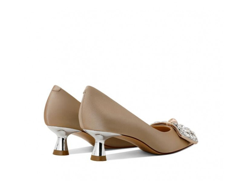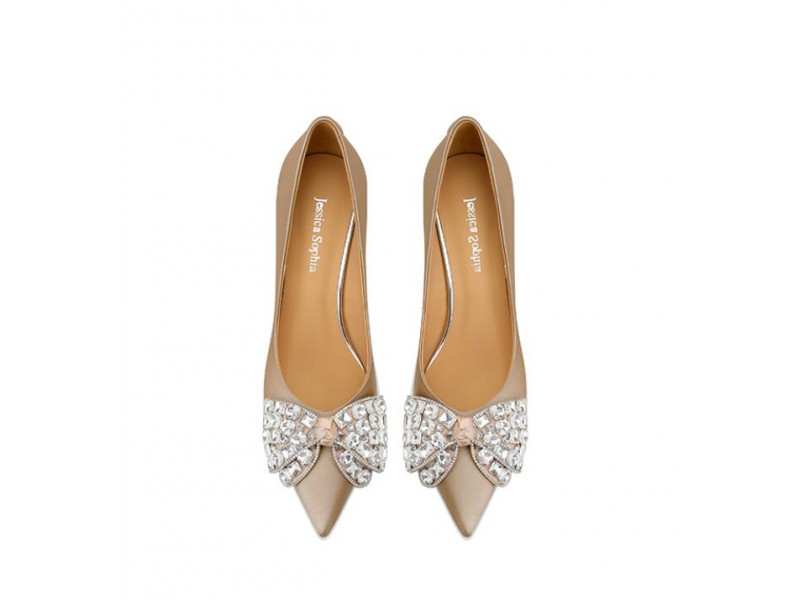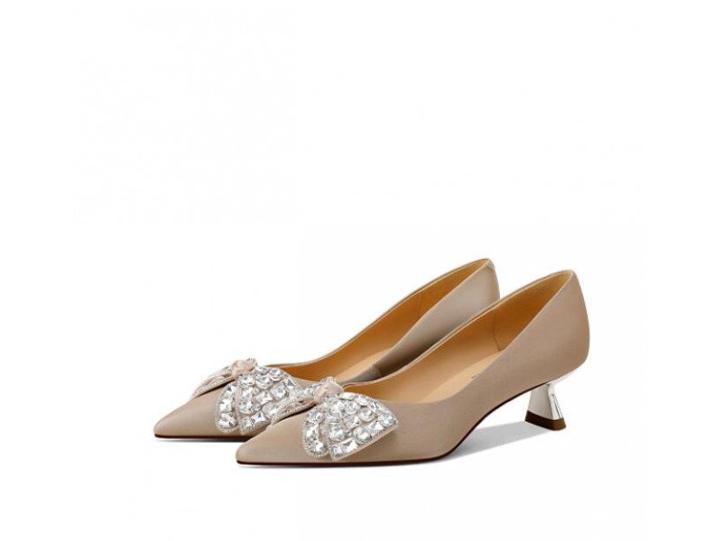 Leather Pointed Toe Rhinestone Bow High Heels