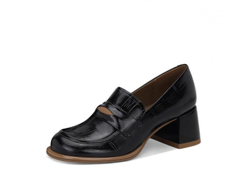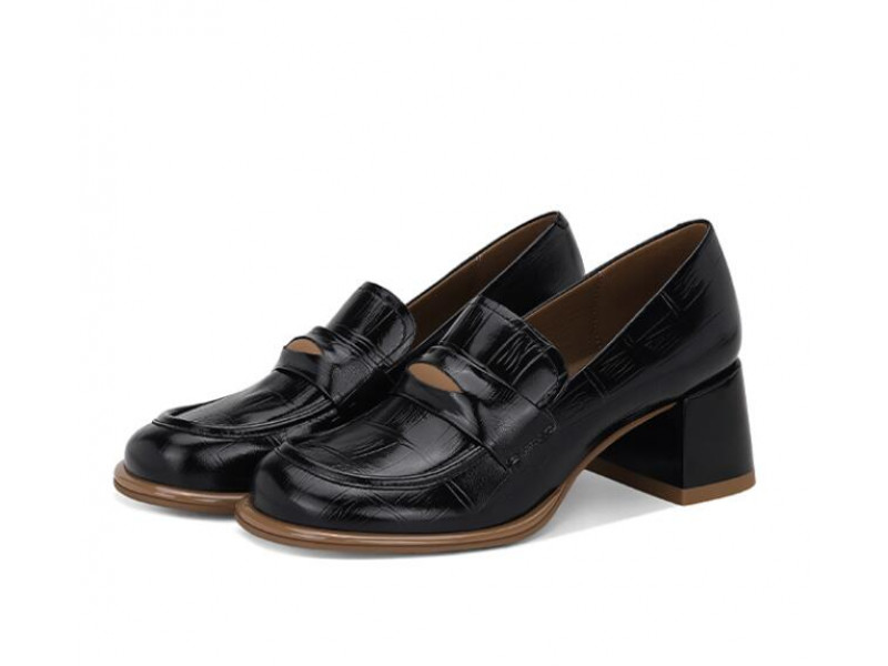 Retro British Style Round Toe Chunky Heel Leather Loafers