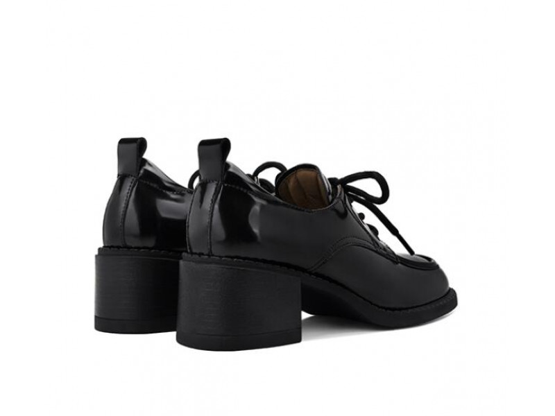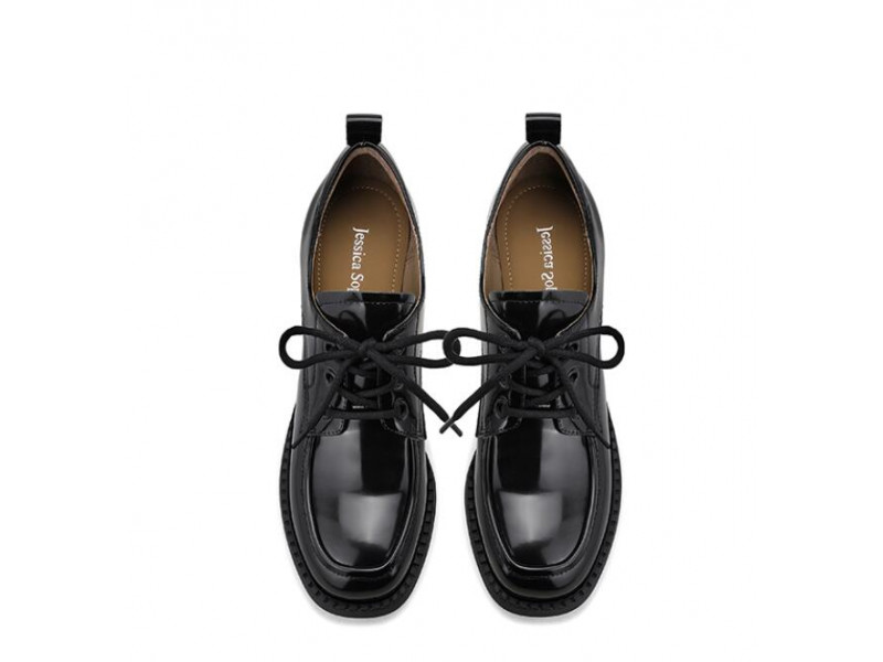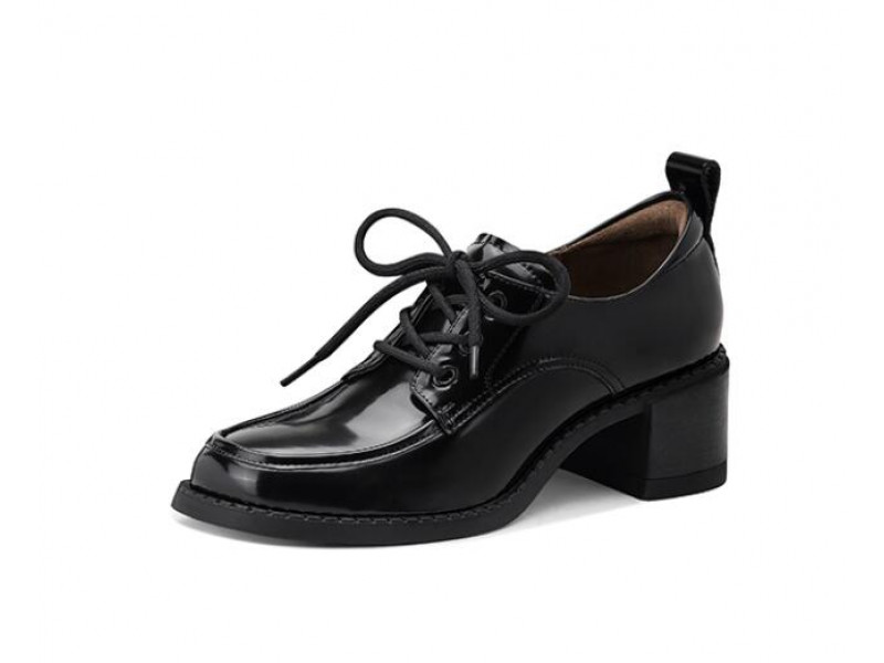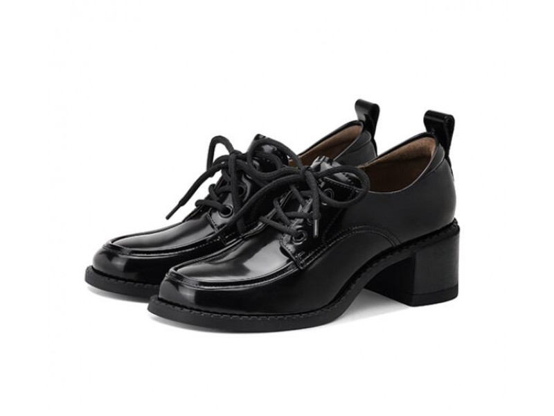 Simple first-layer cowhide mid-heel lace-up loafers