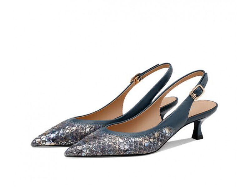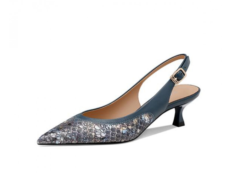 Pointed Toe Comfortable Lazy Back Heel Snake Pattern Leather Baotou Sandals