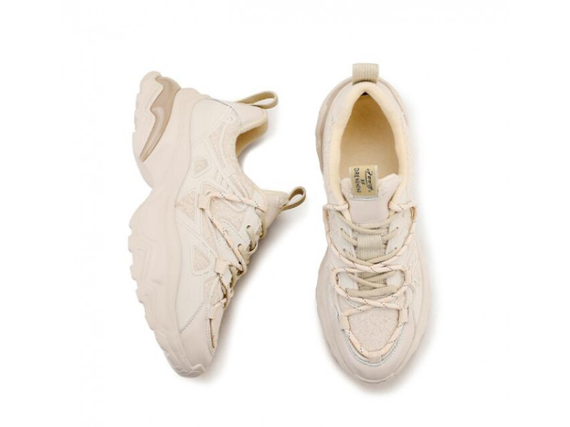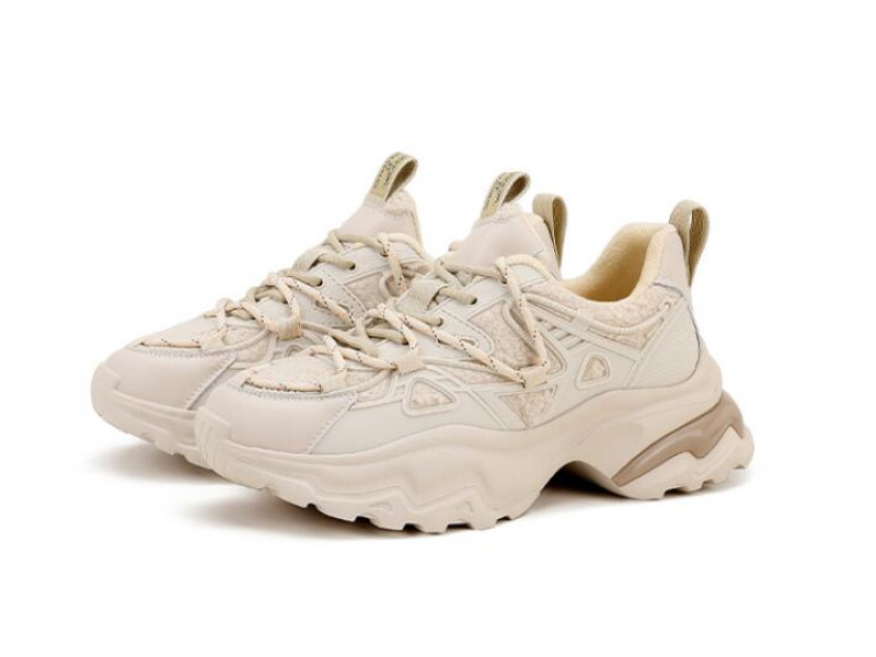 Front Lace Up Round Toe Daddy Shoes Trendy Comfort Thick Sole Apricot Plus Velvet Casual Sneakers